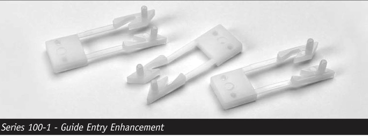 Calmark offers the Series 115-287 Card Guide, a most unique design in PC card guides. The Series 115-287 Card Guide allows users of louver or lance type card guides to easily change to an insulated nylon card guide with a minimum modification of strength and air flow.